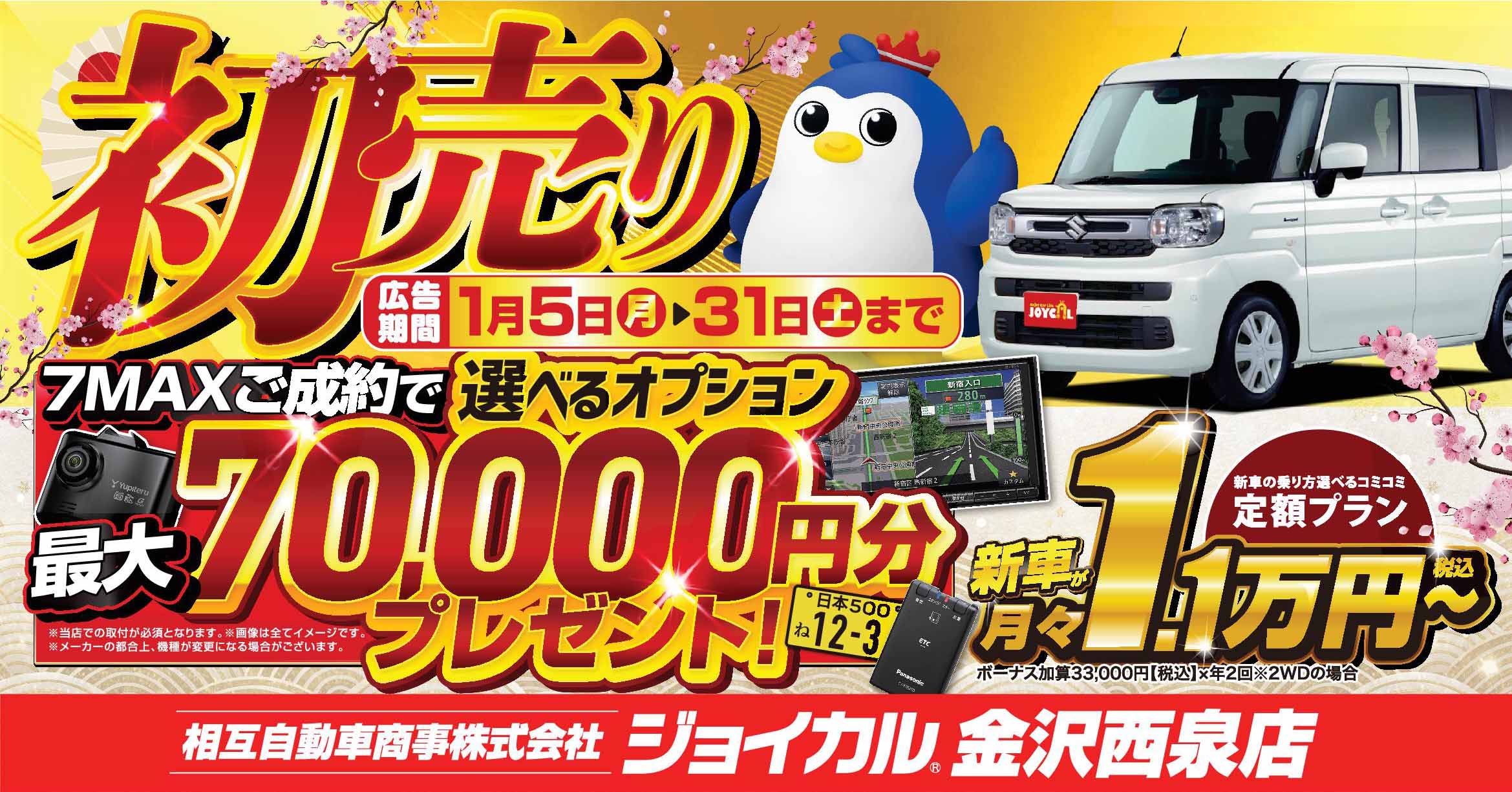 今年の初売りセールは7MAXご成約で7万円分の選べるオプションプレゼント!